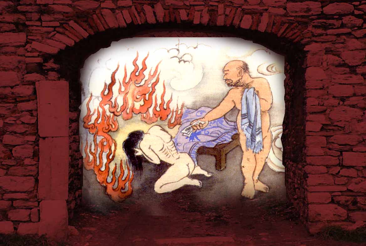 「慾海無邊邪淫起,銅床火柱是家邦。」當知萬惡淫為首,倡導罪尤深。誘惑親犯邪淫者,至死習性難改,墮此地獄,身抱火柱,慘受炮烙煎烤,血肉焦糊,成灰成燼,隨風復生,重撲火柱,週而復始,猶似飛蛾撲火,明知悽慘苦痛,卻情不自禁。至罪消畢,投墮畜牲報,縱得人身,亦受貧賤多疾短命,及眷屬不貞之餘報。