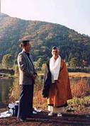(图1 加藤住持在藤原湖畔 请见原日文网页)